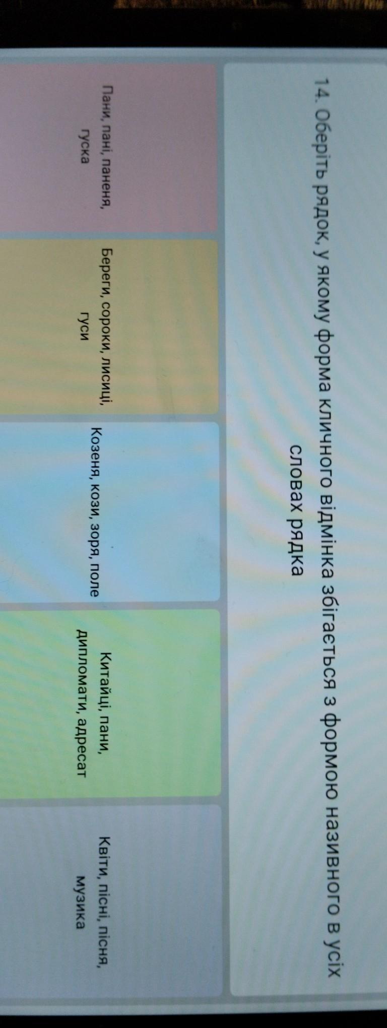 СРОЧНО 14. Оберіть рядок, у якому форма кличного відмінка збігається з формою називного в усіх словах рядка