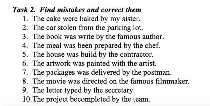 - The project becompleted by the team. becompleted - це нісенитниця. Виправимо be на was, щоб правильно утворити Passive Voice: The project was completed by the team