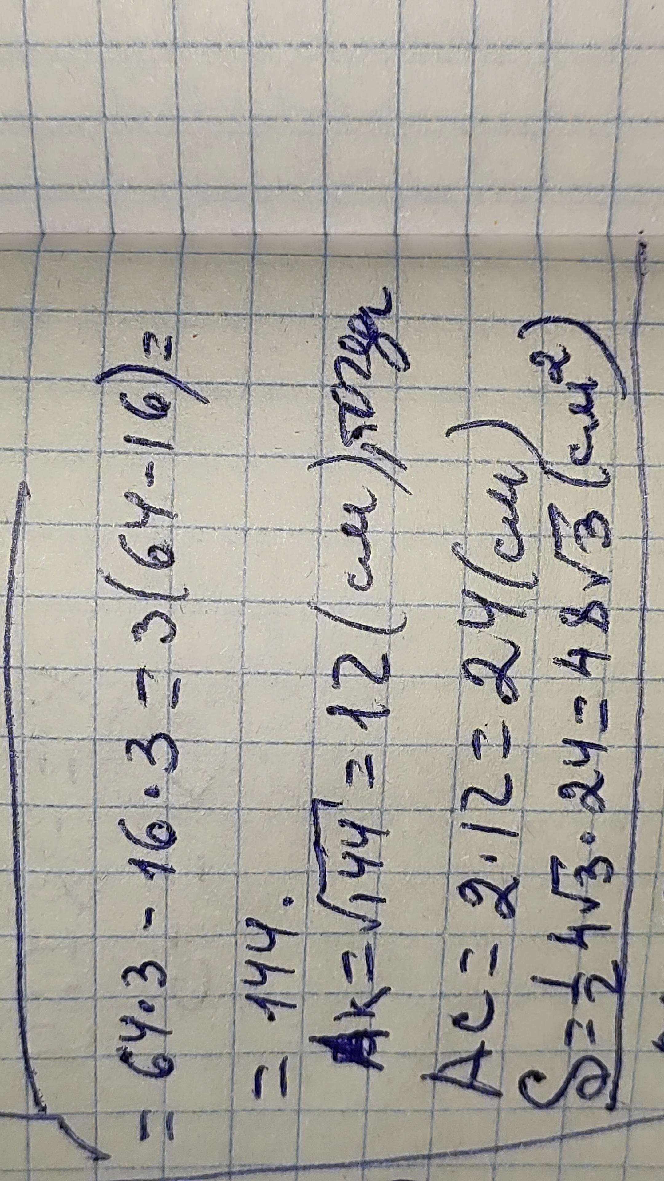 Обчисліть площу рівнобедреного трикутника, бічна сто- рона якого дорівнює 8√3 см, а кут між бічними сторонами - 120°.
