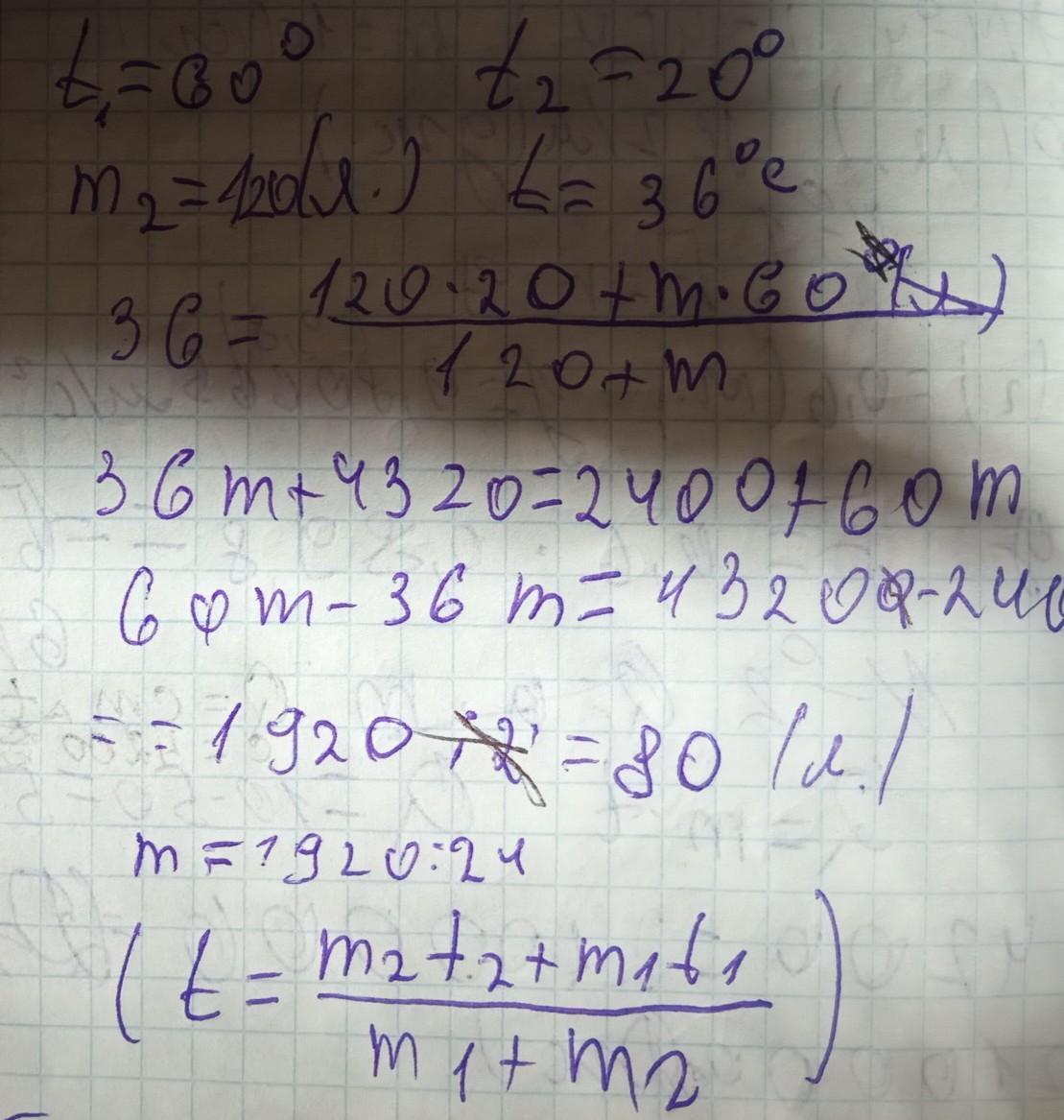 Скільки гарячої води температури 60 градусів цельсія потрібно додати 120 літрів холодної води з температурою 20 градусів?