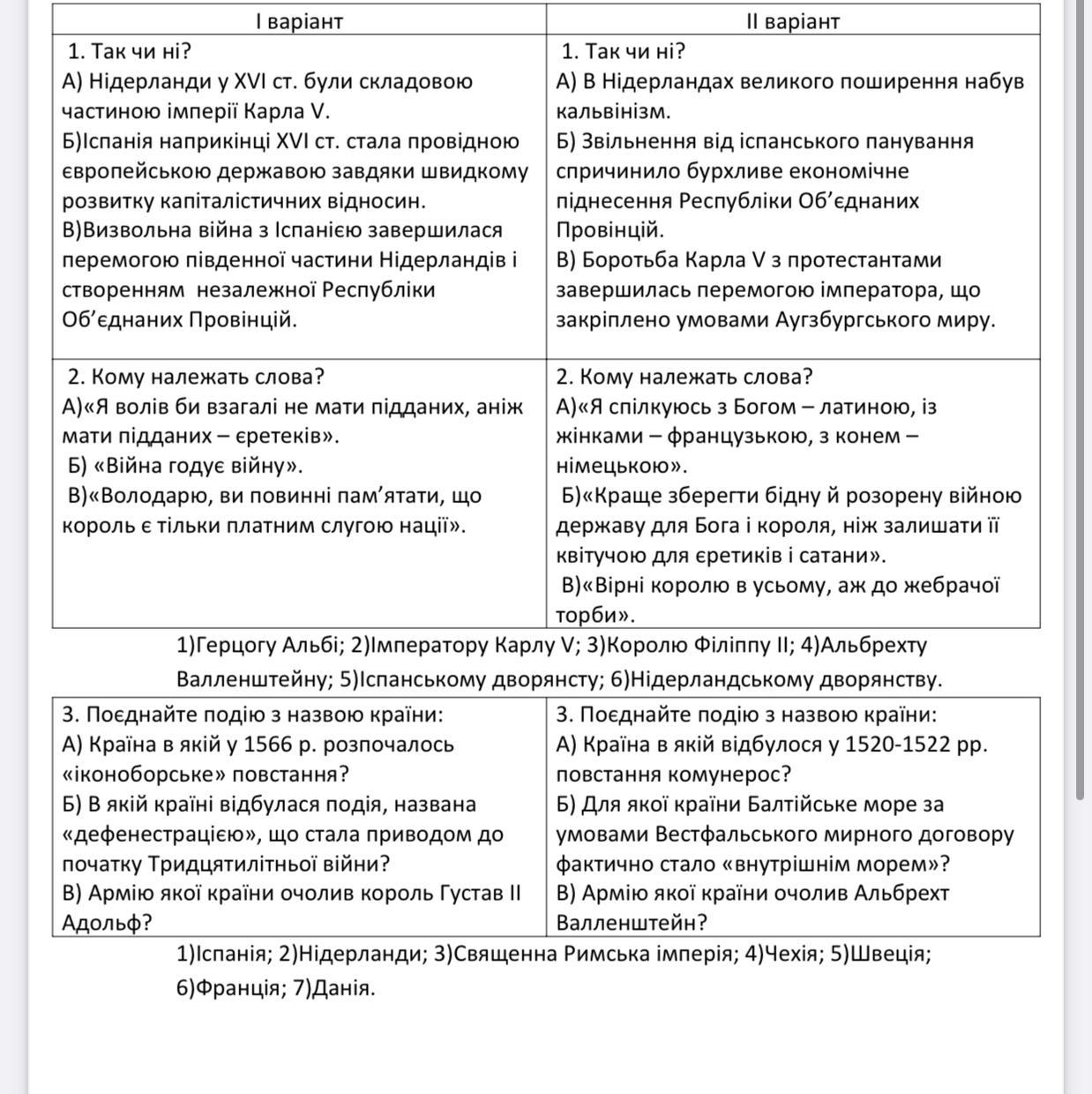 2) а-Філіпп,б-Валленштайн,в-спанському дворянству.