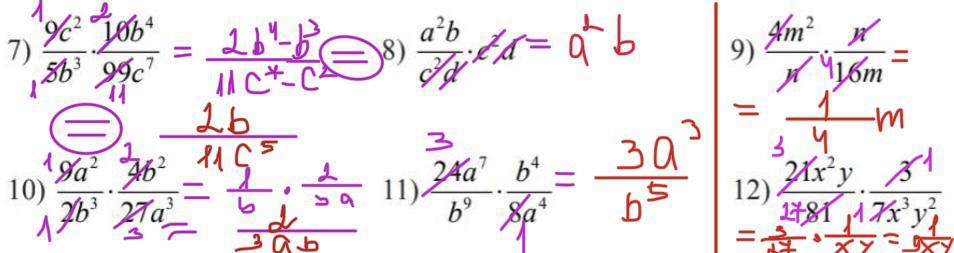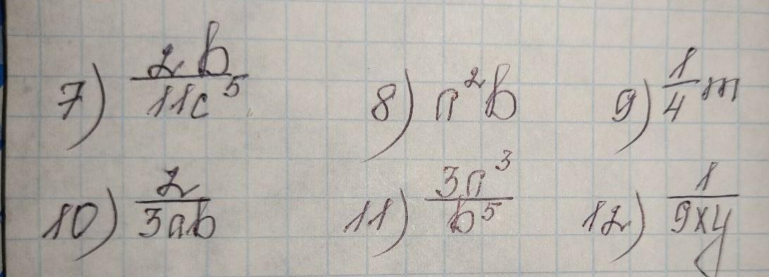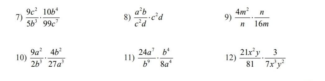 7) 9c² 1064 56³ 99c7 10) 9a² 4b² 26³ 27a³ 8) 11) a²b 24a7 b4 bº 8aª 4m² n 12) n 16m 21x²y3 81 7x³y²