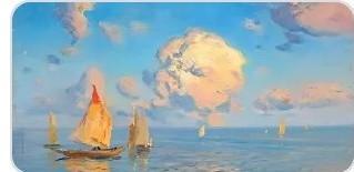 На малюнку зображено кораблі. Вони відпливають в далеку дорогу. Навкруги тільки море та небо. Вже починає сідати сонце, і хмари починають переливатися різними барвами. То жовтими, то червоними, то багряними..А бурхливе море ніби веде кораблі до загадкових, незвіданих місцин.