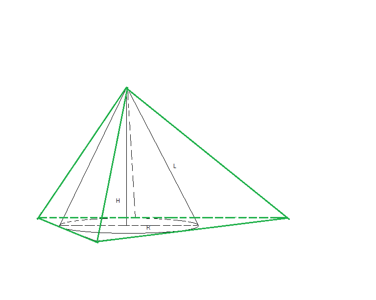 V2=1/3pRH, S2=pL (высота любой грани равна L).