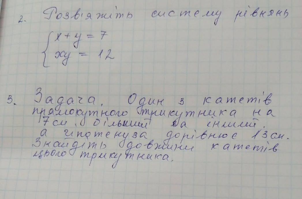 3 . Нехай менший катет має х см , тоді другий катет ( х + 7 ) см .