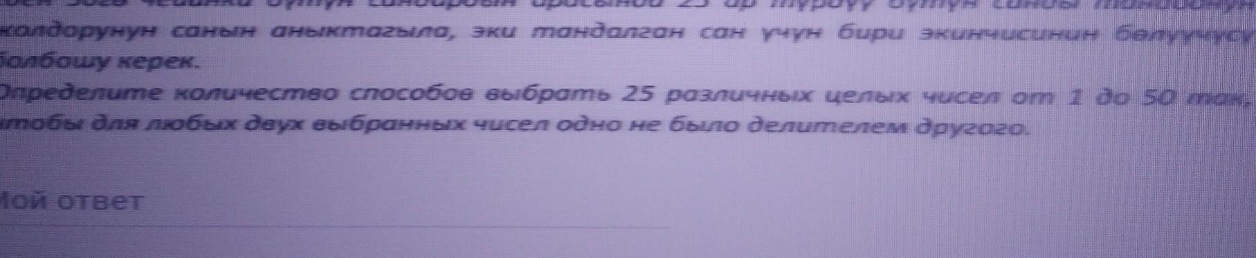 определите количество способов выбрать 25 различных целых чисел от 1 до 50 так чтобы для любых двух выбранных чисел одно не было делителем другого