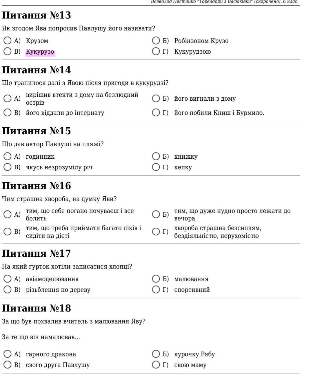 13) Г (або можливо інше, бо в нього було прізвисько Робінзон Кукурудзо)