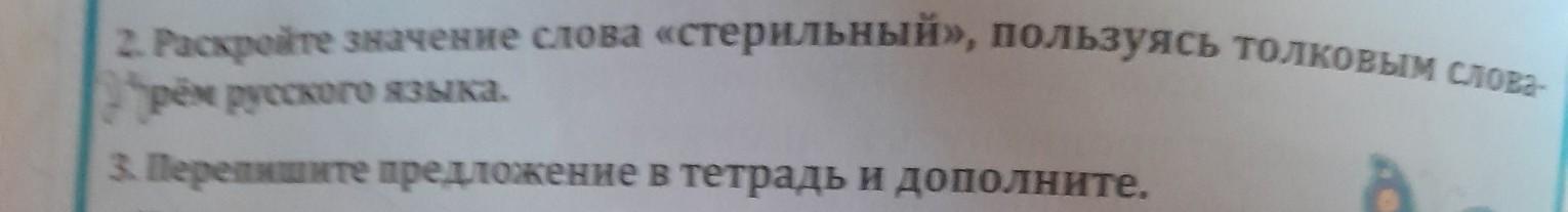 2. Раскройте значение слова «стерильный», пользуясь толковым слова- рём русского языка.