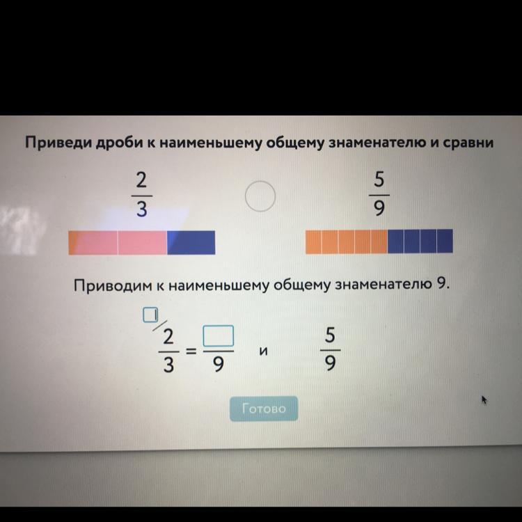 6/9 и 5/9 уже являются дробями с наименьшим общим знаменателем 9