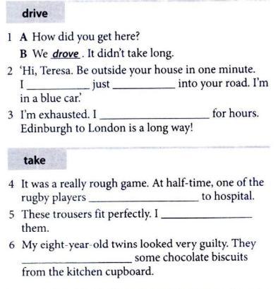 2 am just driving 3 have been driving 4 were taken 5 will take 6 had taken