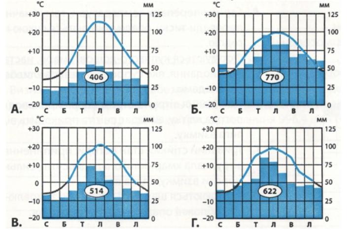 Проаналізувавши кліматичні діаграми різних міст України, розташуйте їх у порядку розміщення зазначених міст із заходу на схід.