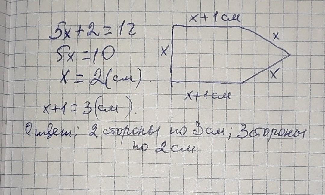 Периметр пятиугольника равен 12 см.