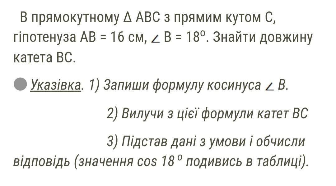 3) BC=16*0,9511≈14,74см (округление до сотых)