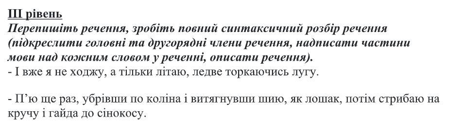 Перепишіть речення, зробіть повний синтаксичний розбір речення (підкреслити головні та другорядні члени речення, надписати частини мови над кожним словом у реченні, описати речення). - I вже я не ходжу, а тільки літаю, ледве торкаючись лугу.