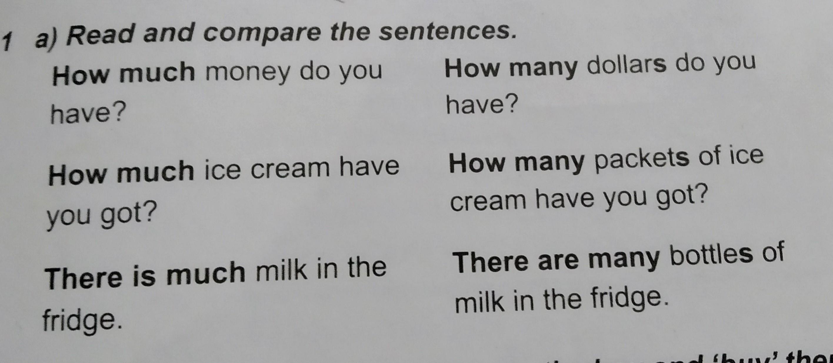 uncountable nouns in the first column, and countable nouns in the second, for example, the word money cannot be counted, but dollars can be counted