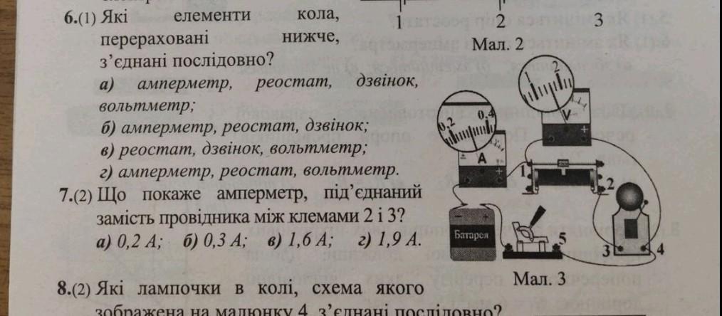 Ответ: б) амперметр, реостат, дзвінок , ключ; 0,3А