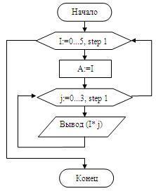 - внешний цикл со счётчиком (для переменной I от 0 до 5 с шагом 1)