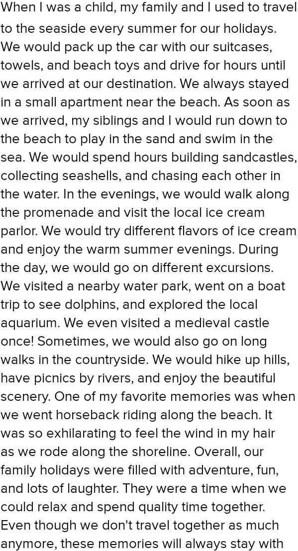Write a story where you used to/ would travel and what you used to/ would do on holidays as a child (15 sentences)