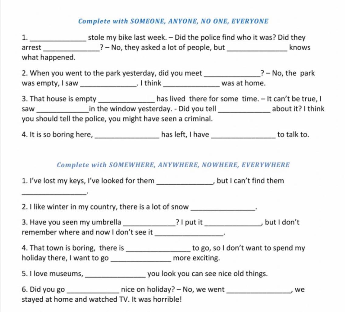 1 Someone, anyone, no one