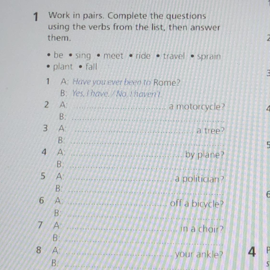 1 Work in pairs. Complete the questions.