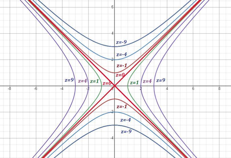 При C>0 линиями уровня являются гиперболы, ветви которых