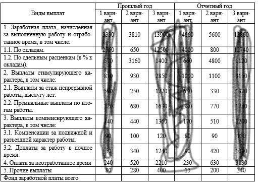Анализ состава и структуры фонда заработной платы в разрезе выплат: