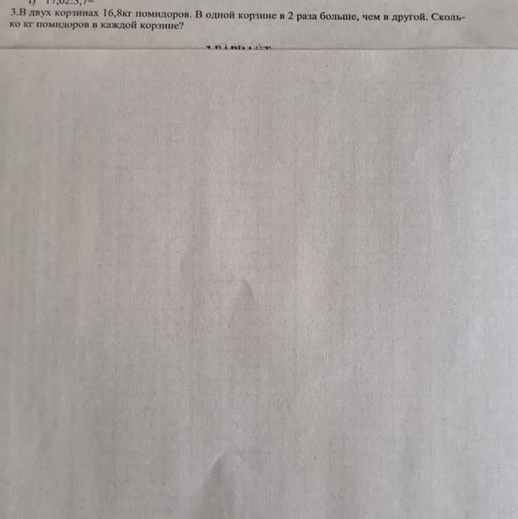 3.В двух корзинах 16,8кг помидоров. В одной корзине в 2 раза больше, чем в другой. Сколь-