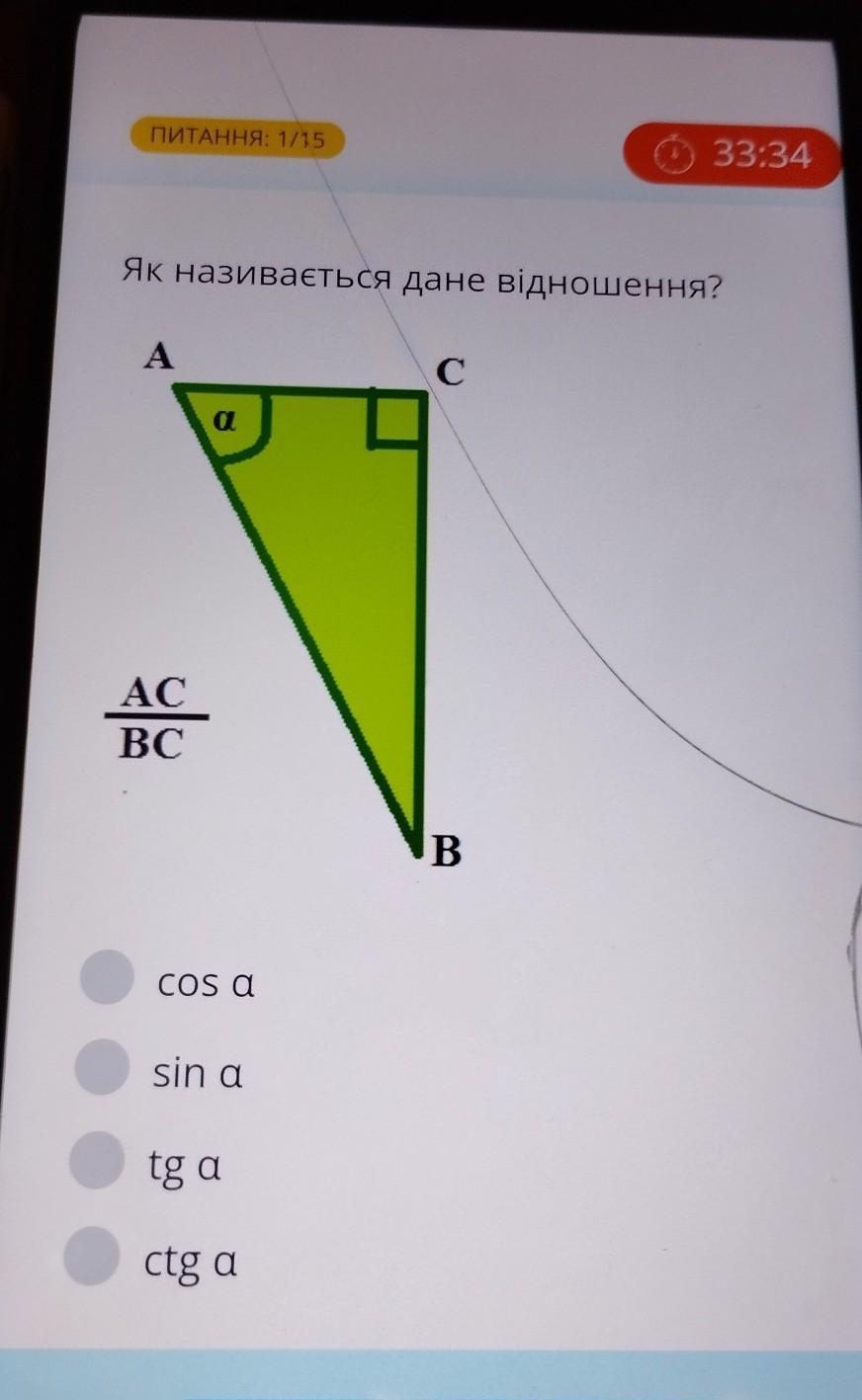 Відношення протилежного катета до прилеглого катета називають котангенс.