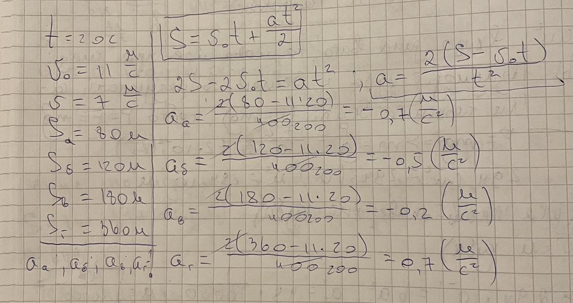 Нам кожна з усіх S були відомі, невідомо тільки прискорення для кожного випадку
