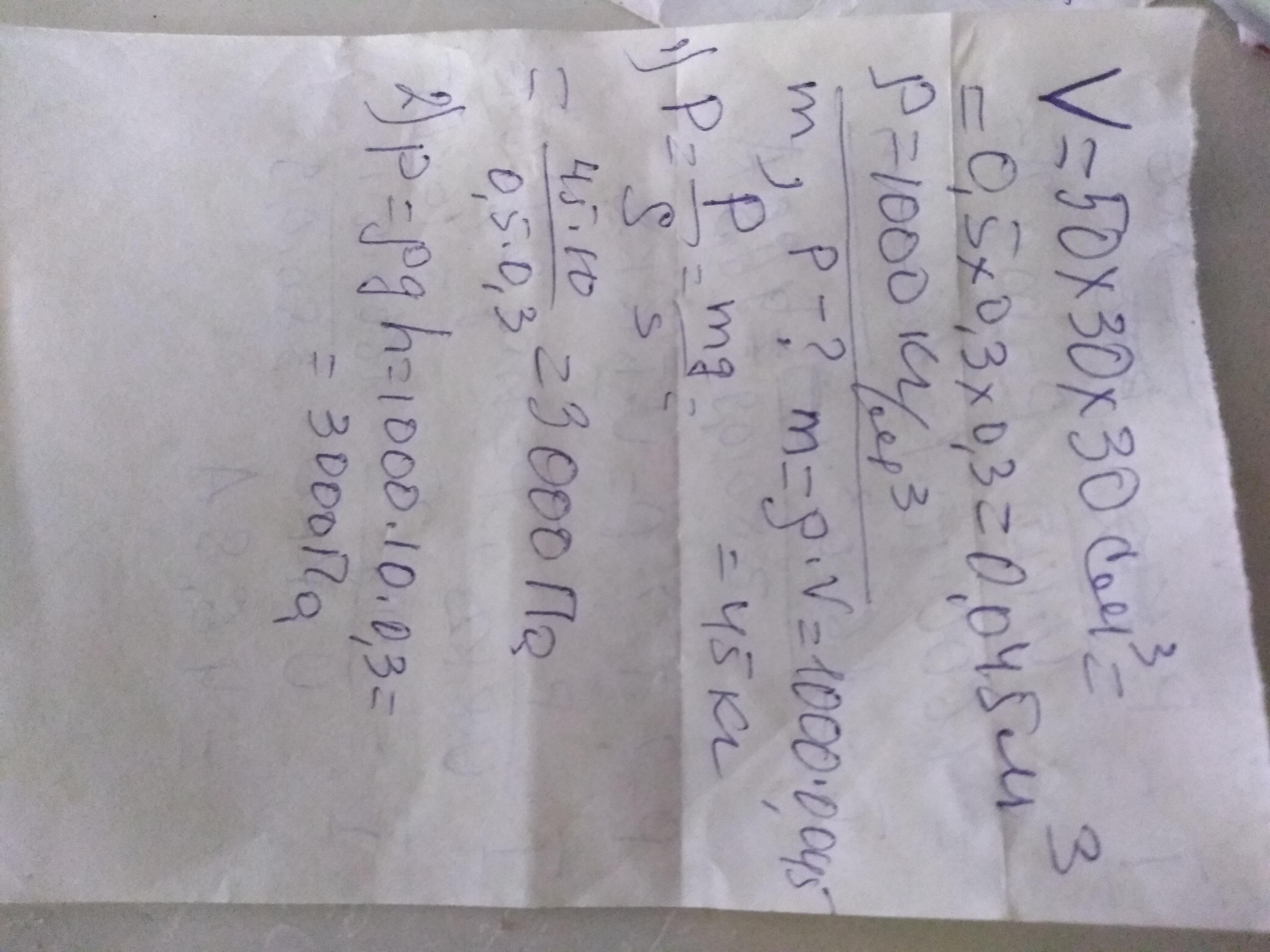 Какова масса воды, полностью заполняющей прямоугольный аквариум? Размеры аквариума: длина: 50 см, ширина: 30 см, высота: 30 см. Какое давление воды на дно аквариума? Решите задачу двумя способами и сравните результаты.