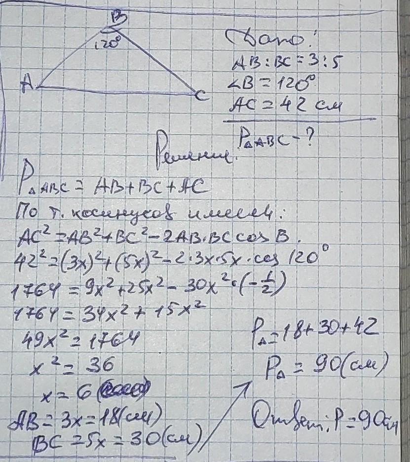 42²=(3х)²+(5х)²-2*3х*5х*cos120°