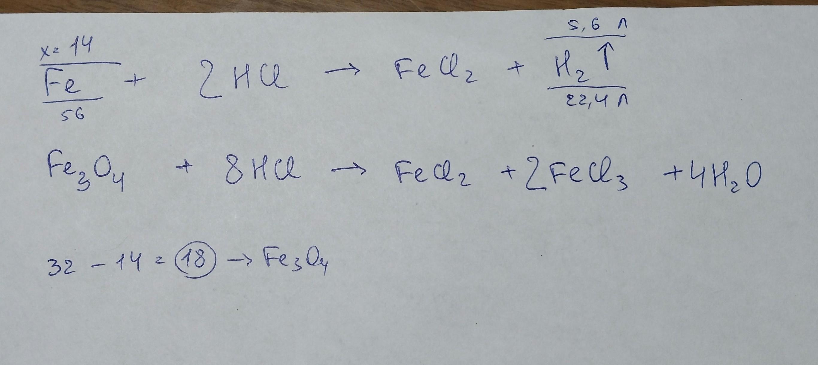 Ответ: Fe - 14 гр, Fe3O4 - 18 гр