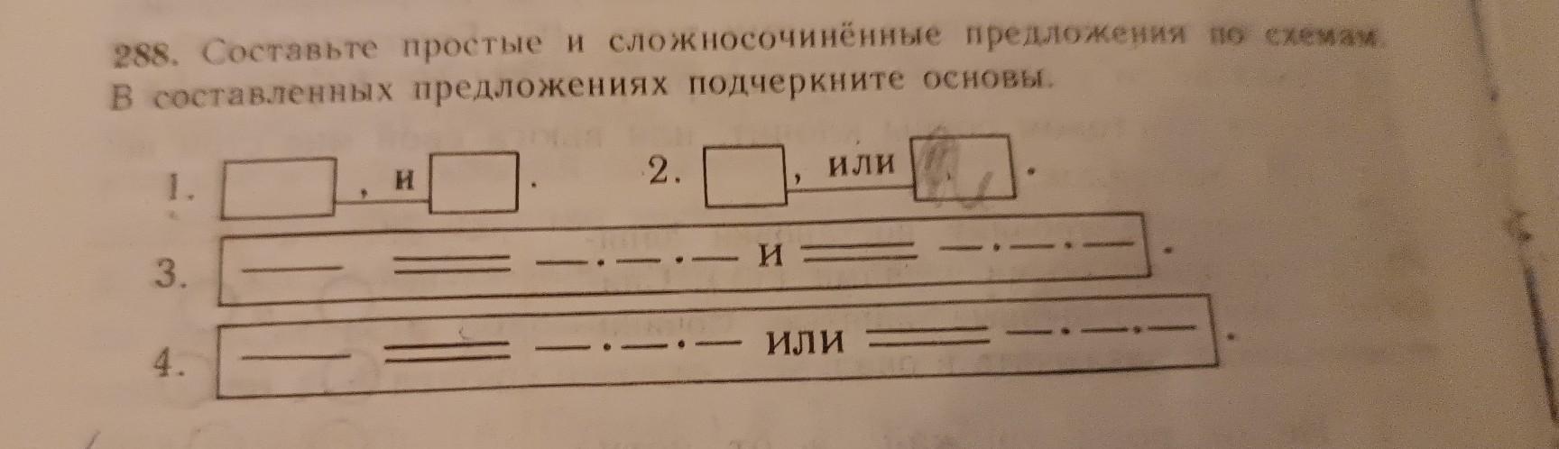 Составьте простые и сложносочиненные предложения по схемам. В составленных предложениях подчеркните основы.