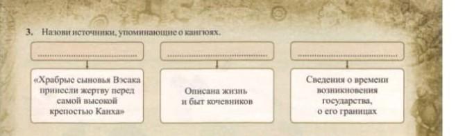 3. Назови источники, упоминающие о кангюях. > Описана жизнь и быт кочевников Сведения о времени возникновения государства, о его границах
