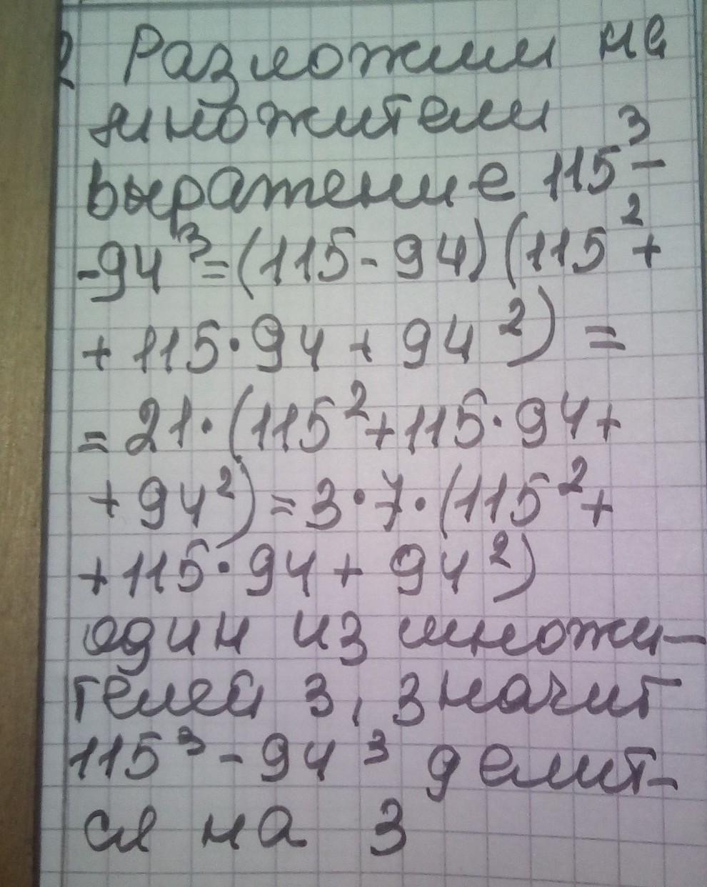 Докажите, что значение выражения: 115³-94³ делится на 3​