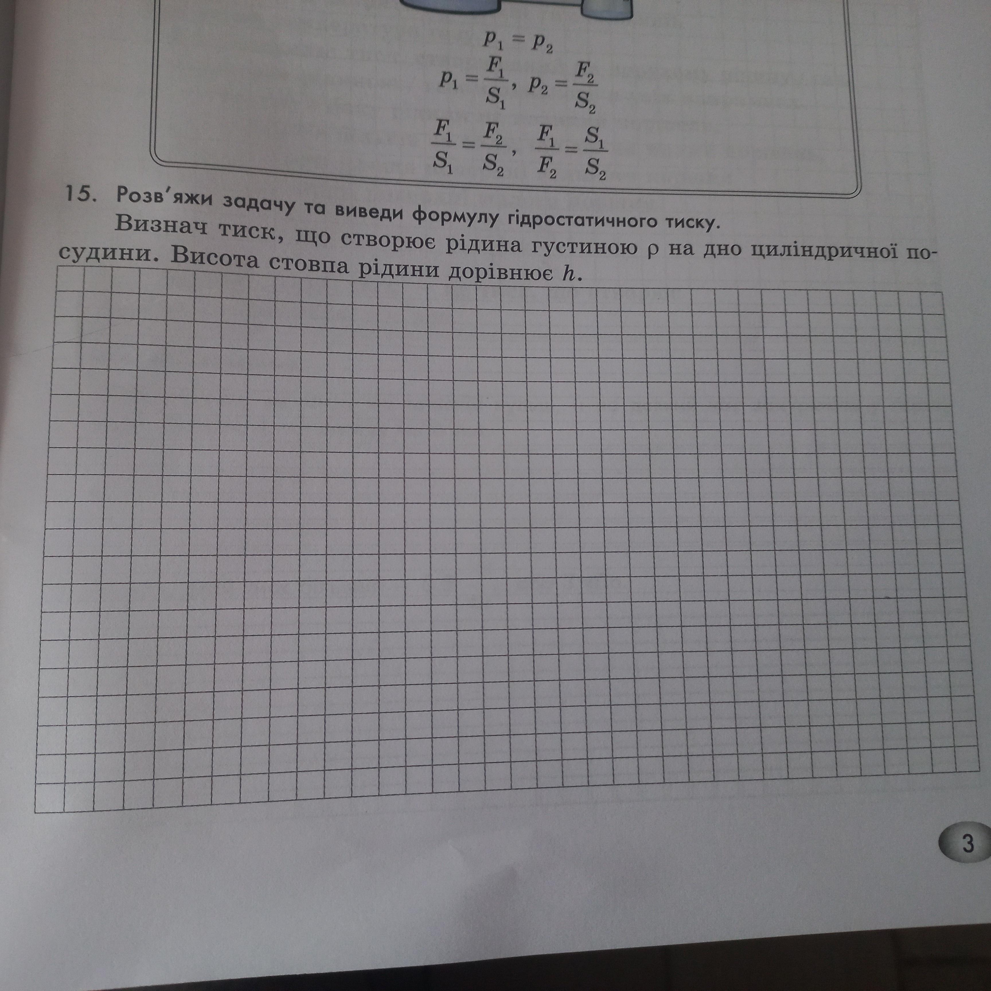 ДАЮ 30 Б. Визнач тиск, що створює рідина густиною р на дно циліндричної по судини. Висота стовпа рідини дорівнює h. З РОЗВ'ЯЗКОМ