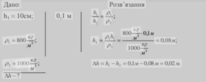 В U - подібній трубці міститься глуцерин і ацетон. Висоти шару ацетону дорівнює 10 см. На скільки рівень поверхні ацетону вищий за рівень поверхні