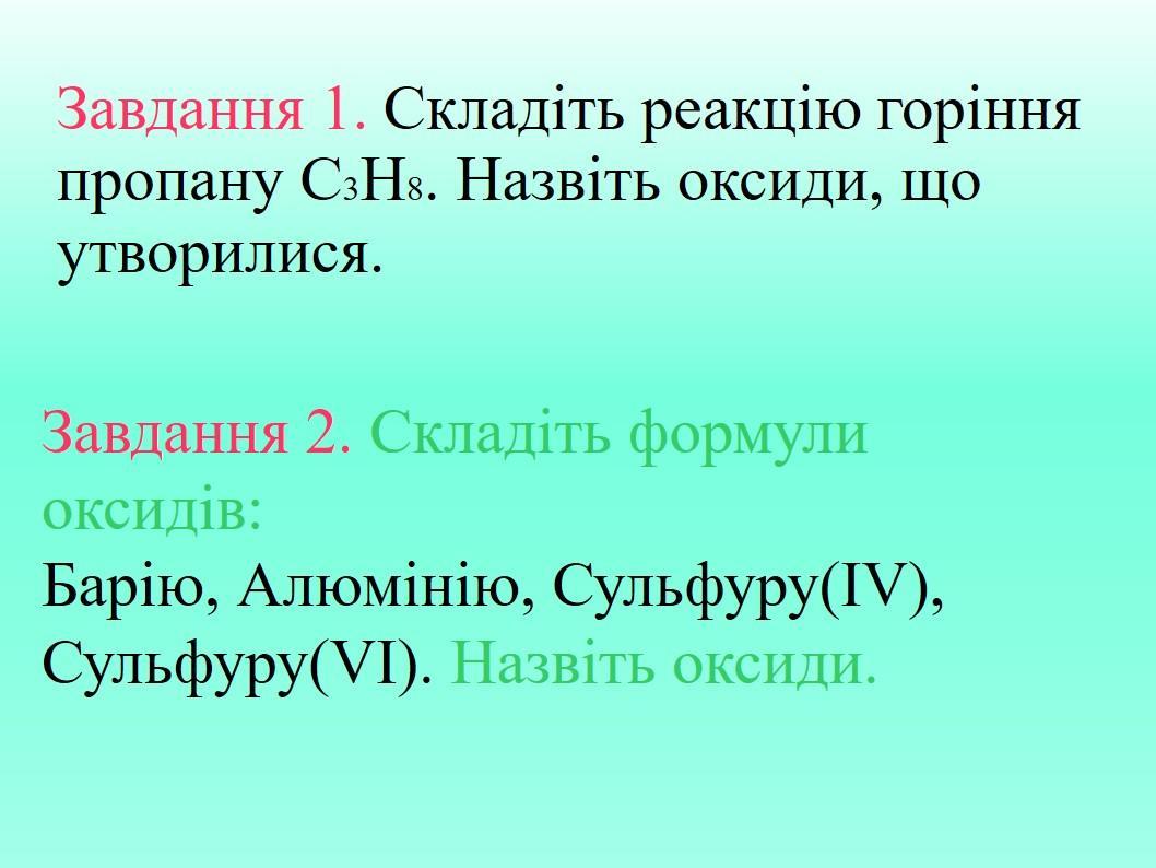 C3H8 + 5O2 → 3CO2 + 4H2O оксид вуглецю (IV)