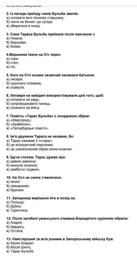1.Під час зустрічі з синами Тарас Бульба запропонував:
