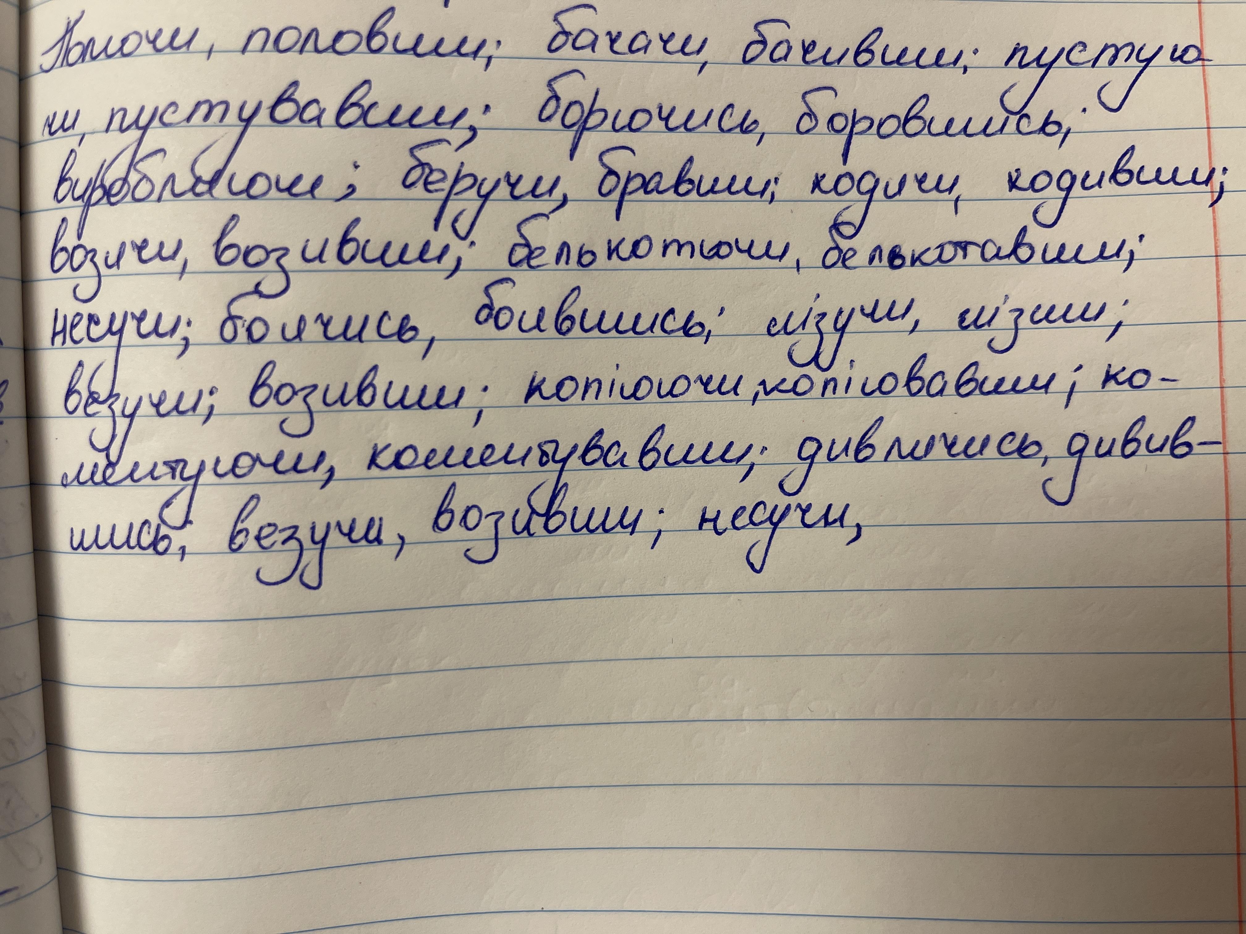 белькотіти, нести, боятися, лазити, возити, жати, копіювати, коментувати, дивитися,