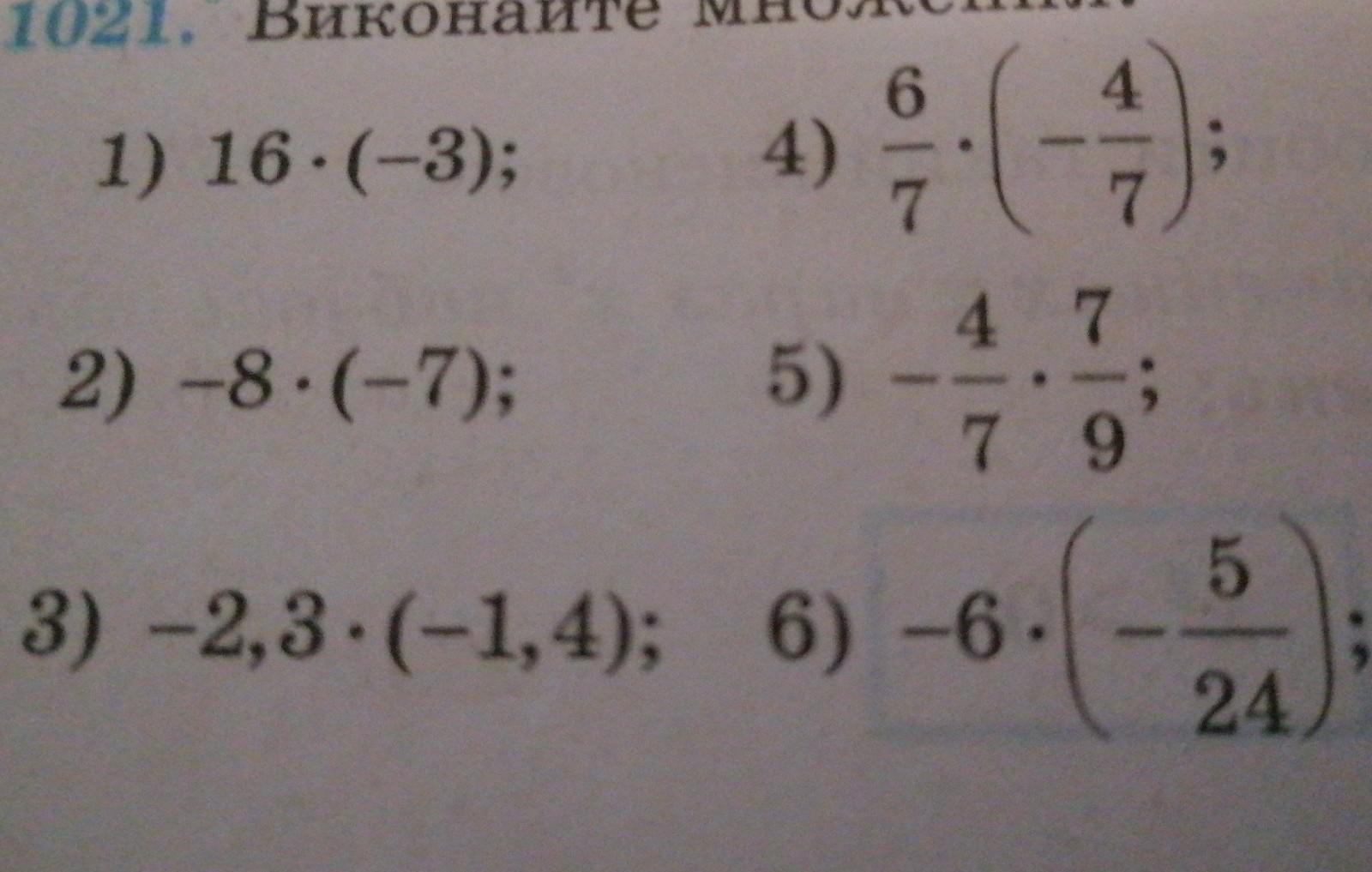 4) 6/7 * (-4/7) = -(6/7 * 4/7) = -24/49
