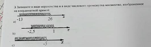 3 Запишите в виде неравенства и в виде числового промежутка множество, изображенное
