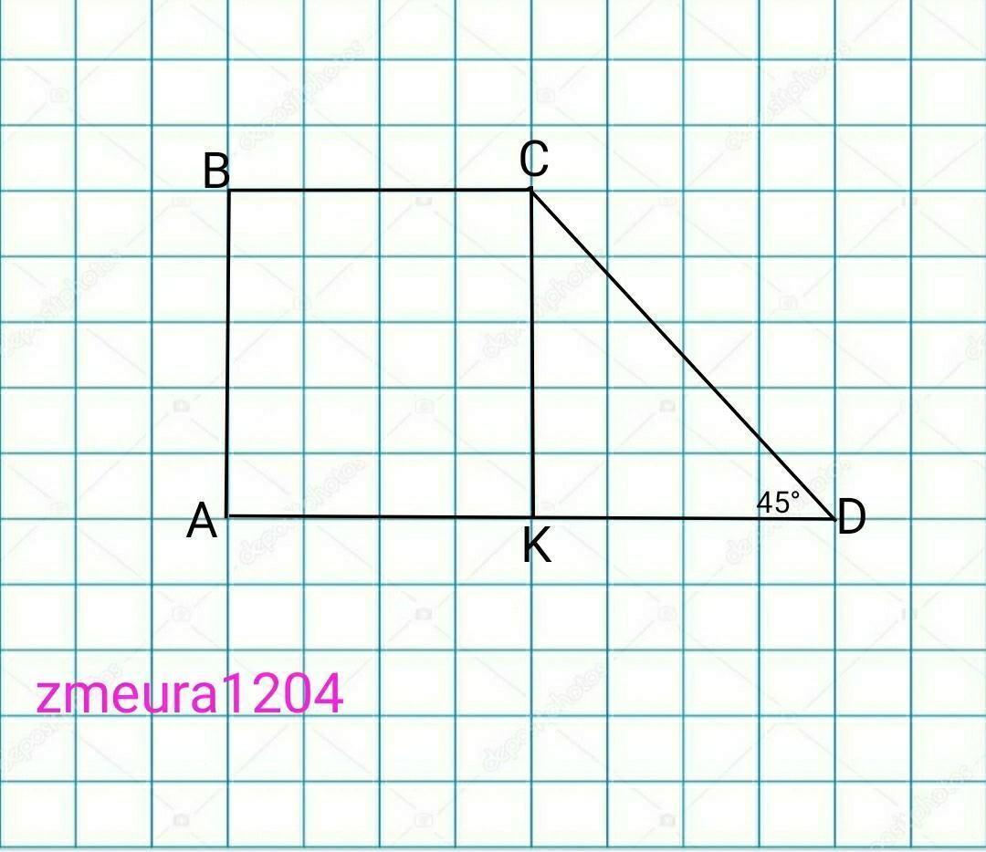 ∆СКD- прямоугольный равнобедренный треугольник. (<СКD=90°; <CDK=45°; <KCD=45°) углы при основании равны.