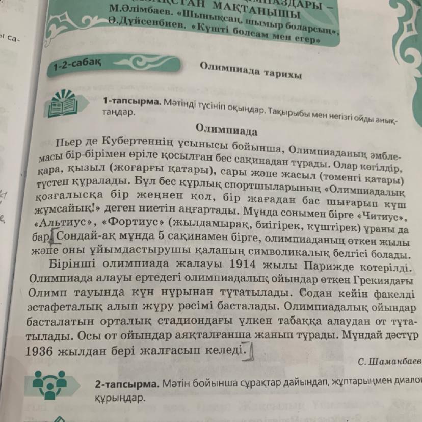 1.С: Өріле қосылған 5 сақина неше түстен және қандай түстерден тұрады?