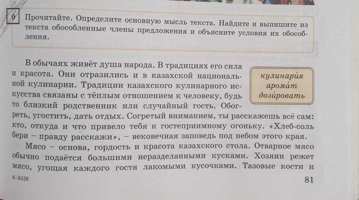 9 Прочитайте. Определите основную мысль текста. Найдите и выпишите из текста обособленные члены предложения и объясните условия их обособ- ления.