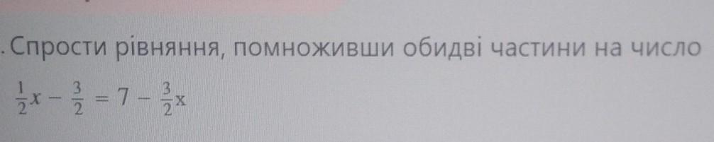 1/2*х-3/2=7-3/2*х /*2 (умножаем на 2 каждый член)