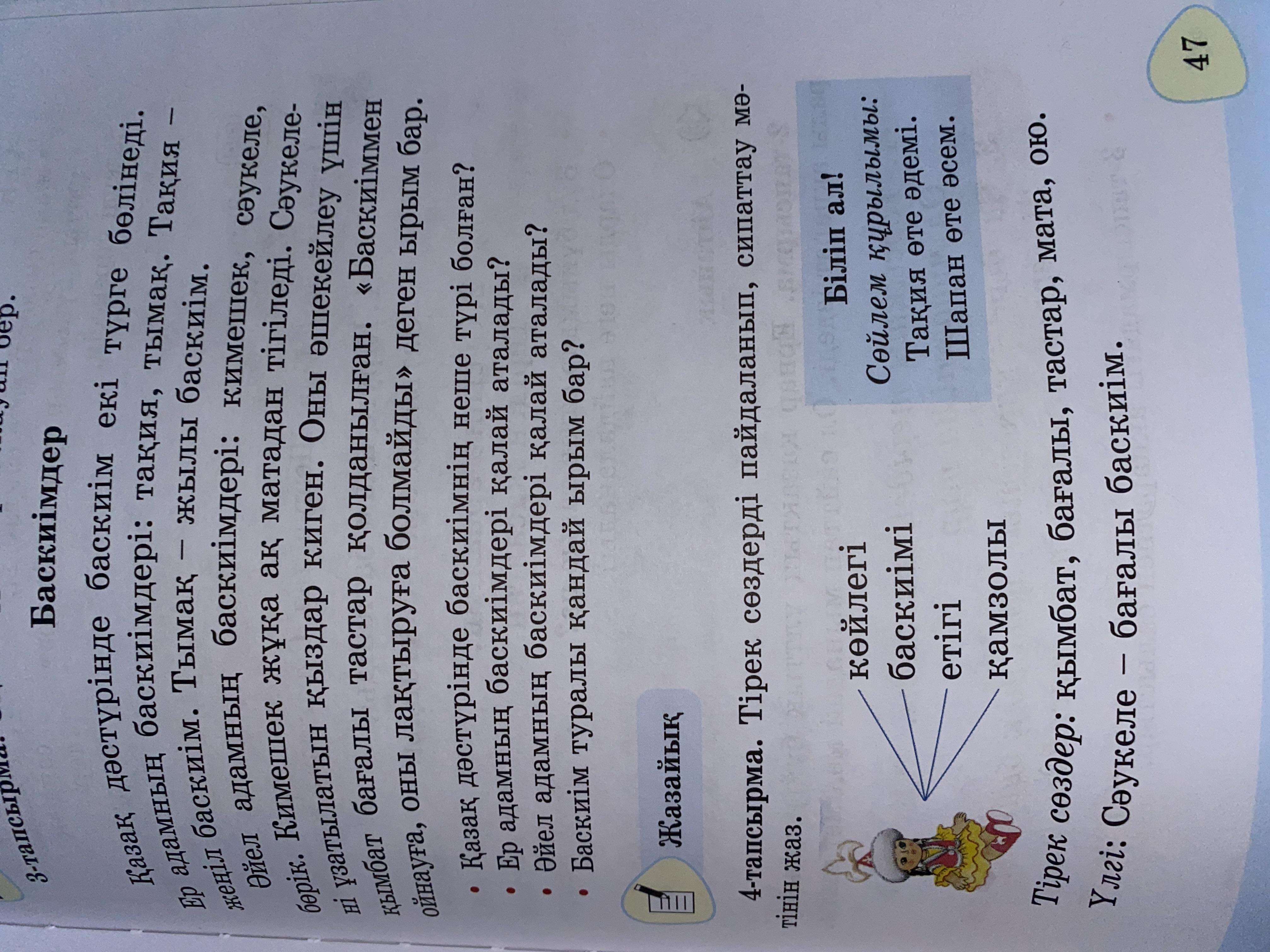 бұл менің қуыршағым. маған оны әжем Астанадан әкеліп берді. ол қазақ киімін киген өте әсем қуыршақ. онық көйлегі сары матадан тігілген, оюлармен безендірілген. баскиімі - сәукеле деп аталады. ол - өте бағалы сәукеле. байпағы - бағалы тастардан жасалған етігі. камзолы - қызыл түсті матадан жасалған. ол - оюлармен, асыл тастармен әсем безендірілген.