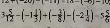 5/4 + 1/3 -3/8 +1/2 - 25/6=