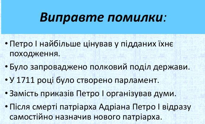 5. Після смерті патріарха Адріана Петро І заборонив обрання нового патріарха