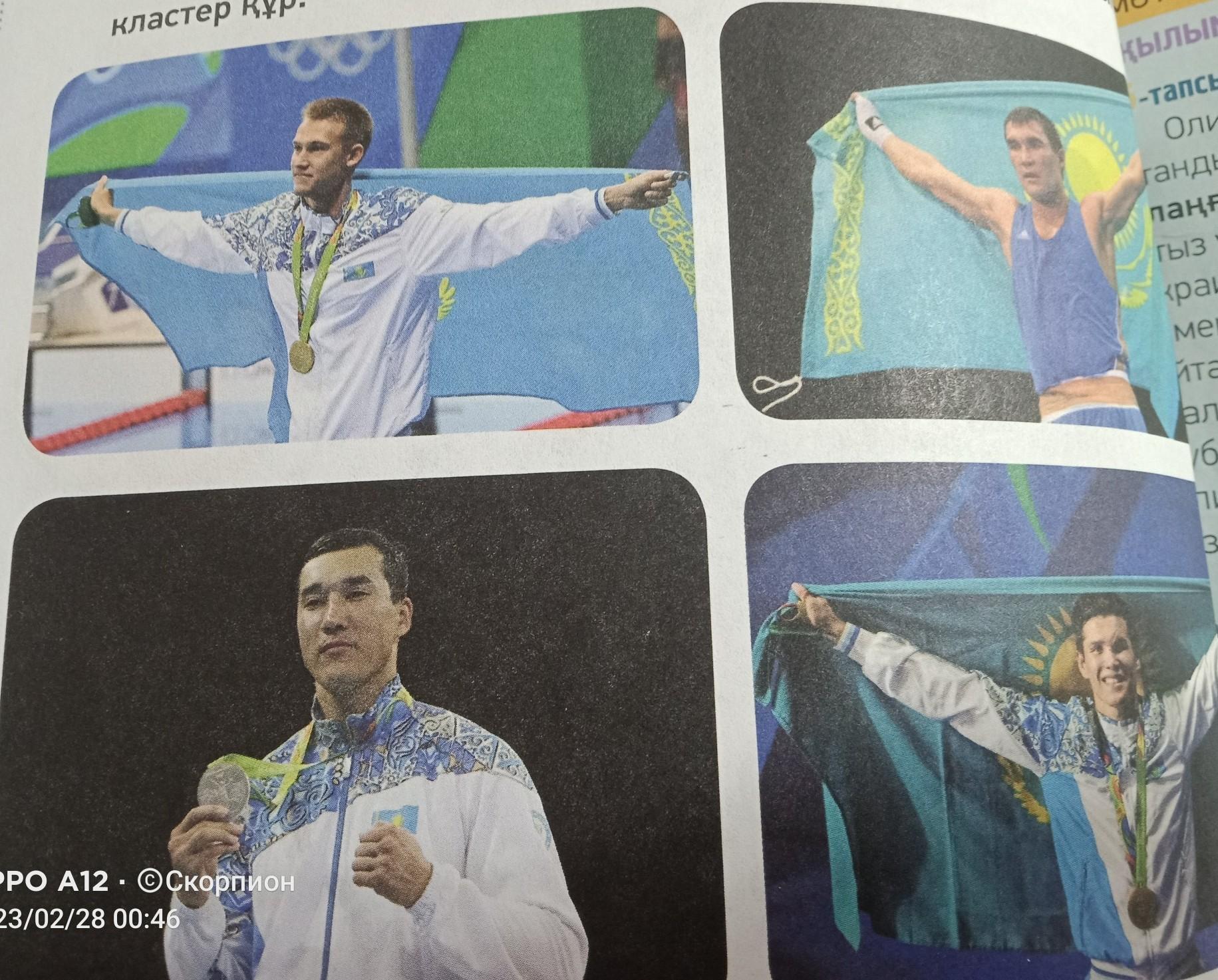 ЖАЗЫЛЫМ 2-тапсырма. Суретке кара. Олимпиада жеңімпаздарын ата. Олардың бiрiнiң жетiстiгi туралы <<Жеңіс баспалдақтары>> деген тақырыпта кластер құр.